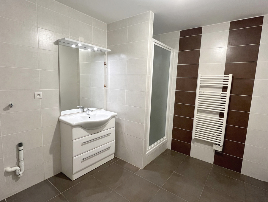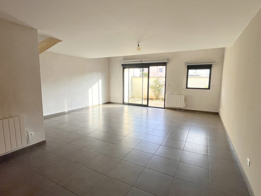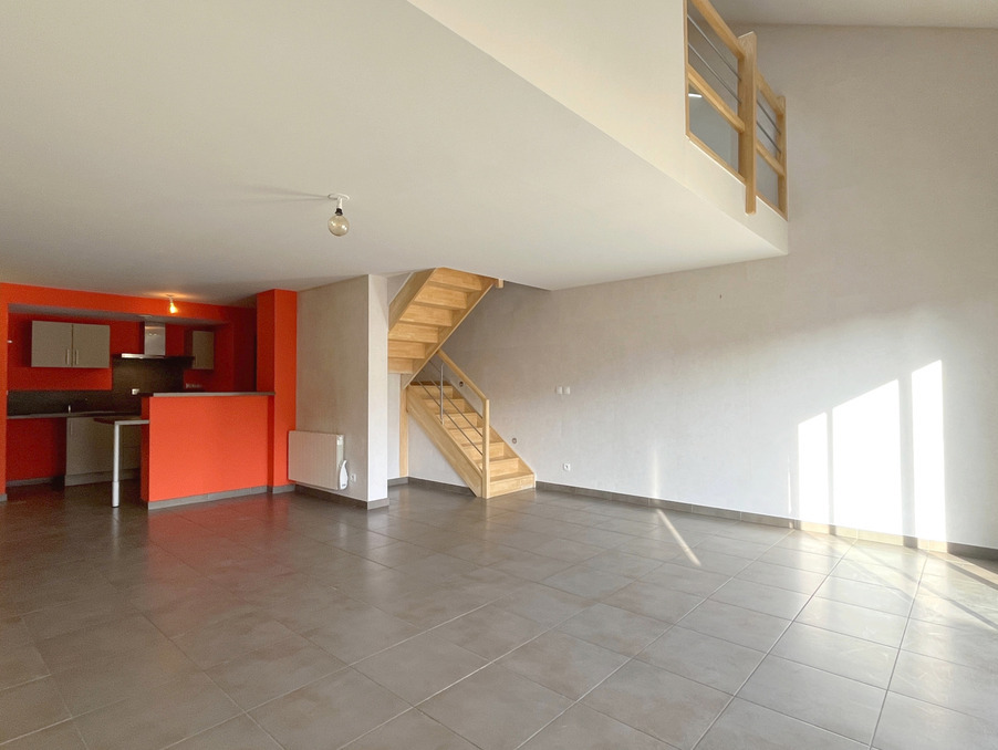 A proximité de la gare, de l'école Jean Jaurès et du lycée, grand appartement T4 d'environ 115 m2, en duplex, avec terrasse de 22 m2 et 2 places de stationnement.Au rez-de-chaussée, une grande entrée avec placards dessert une pièce de vie avec cuisine ouverte sur séjour, un cellier, un WC et une salle de douches.