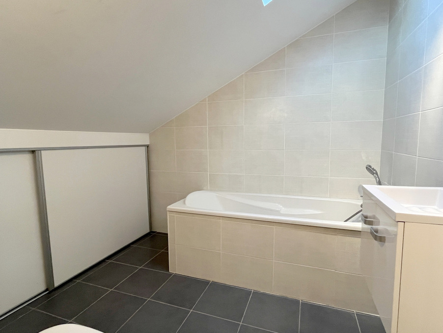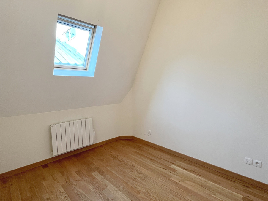 Au niveau supérieur, on trouve 2 autres chambres, un dressing et une salle de bains avec WC.