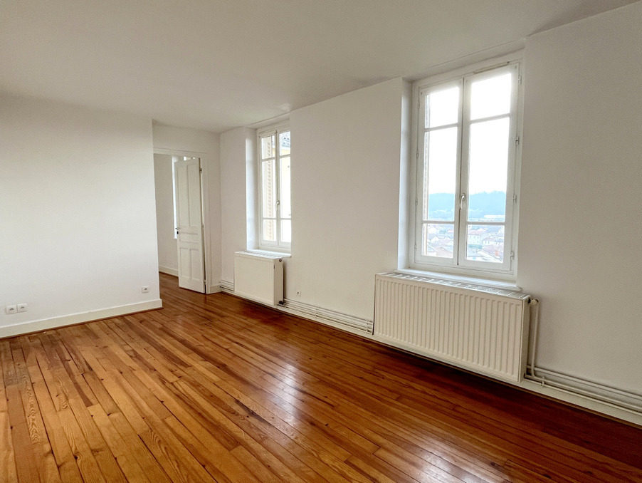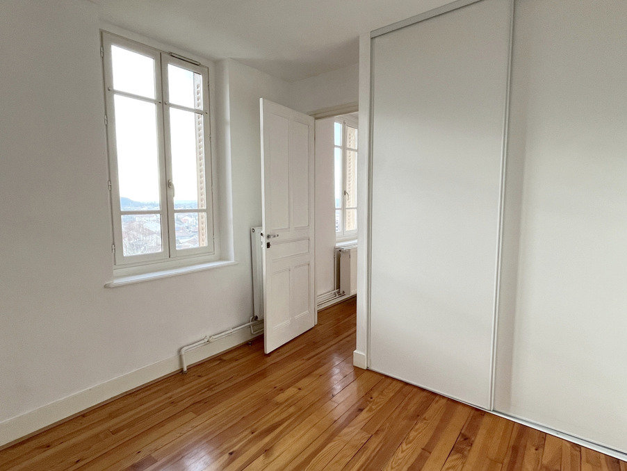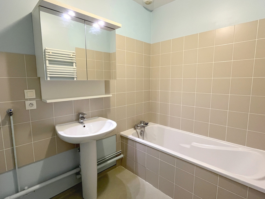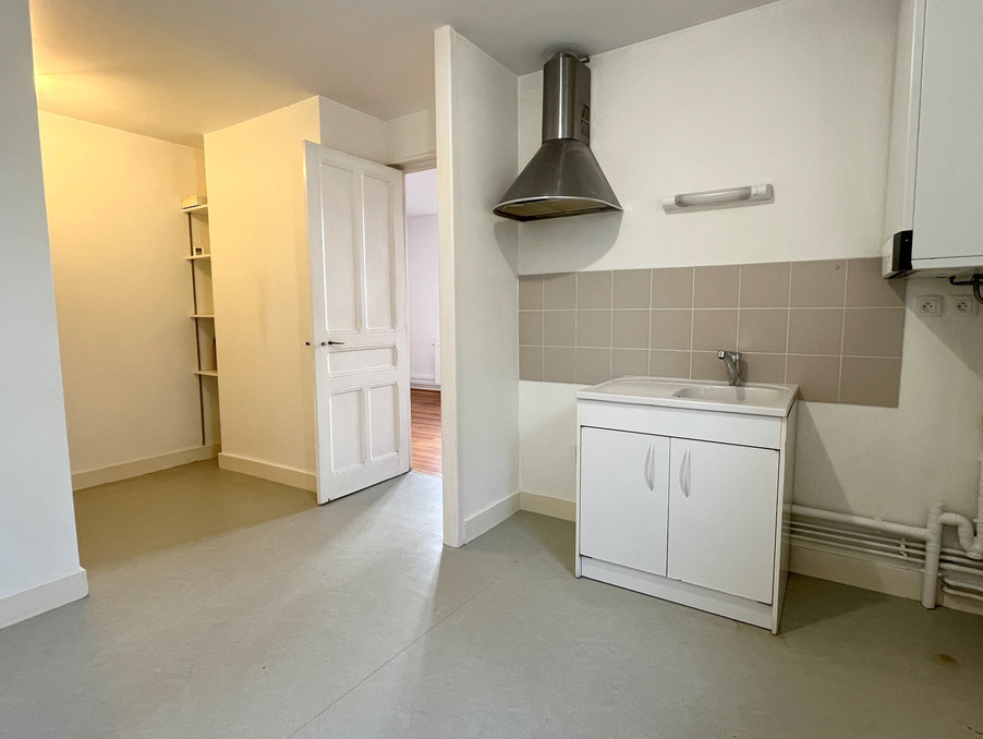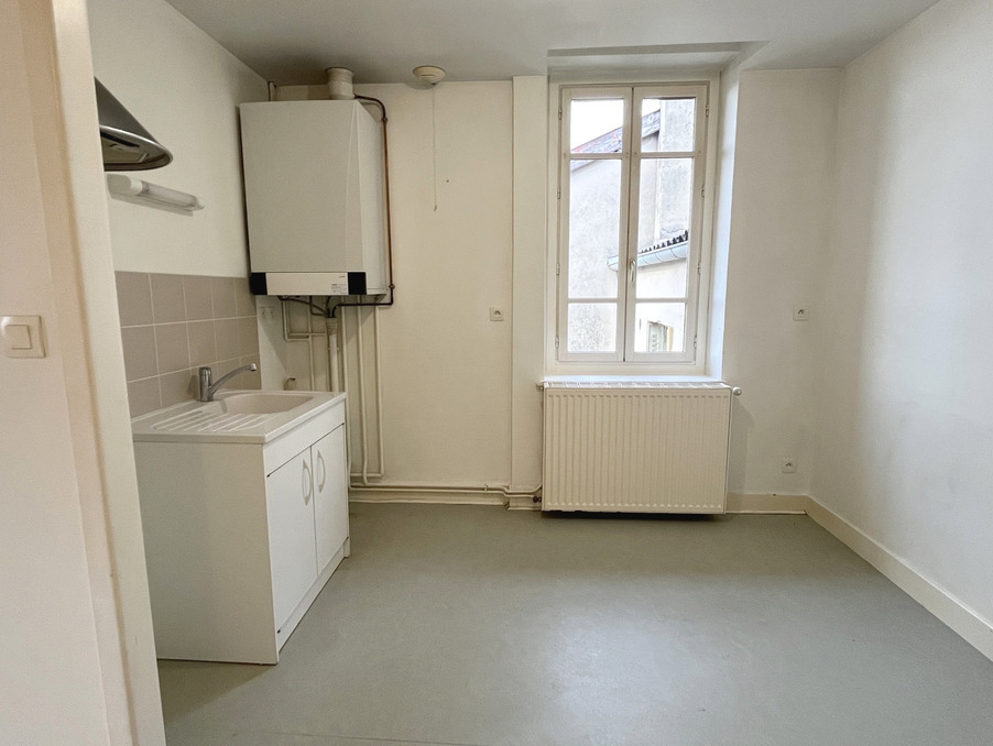 AU CENTRE-VILLE D'AMBERIEU, appartement T2 d'environ 50m2, situé au 2è étage, comprenant entrée avec rangement, cuisine, un salon, une chambre, salle de bains et WC.