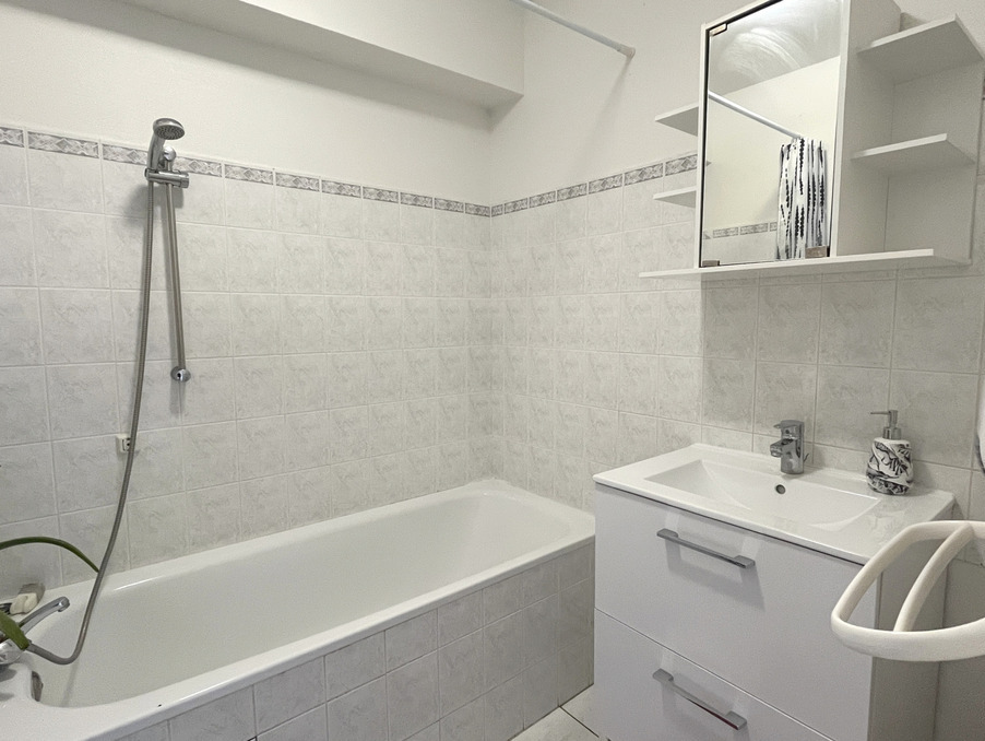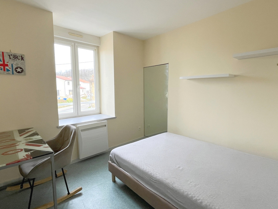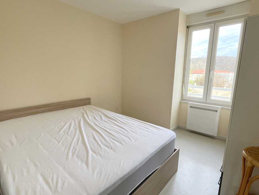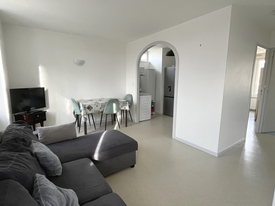A environ 1,8 km du centre-ville, au calme, appartement T3 d'environ 47m2 , situé au 1er étage, comprenant entrée avec placard, cuisine ouverte sur séjour, 2 chambres, salle de bains, WC.