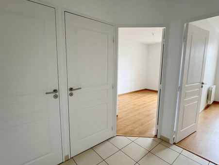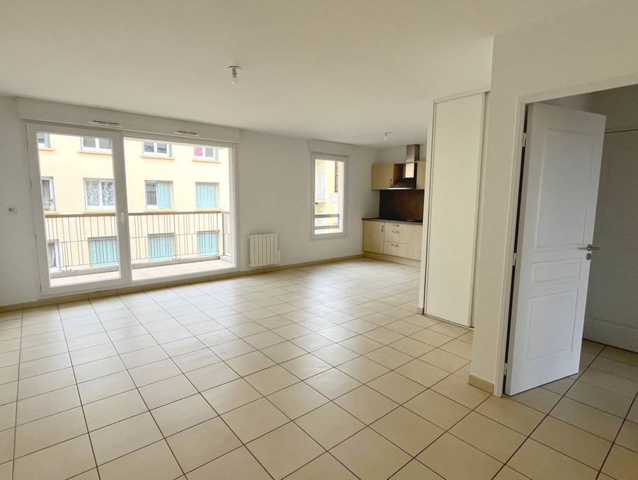 Hyper-centre d'Ambérieu, dans une copropriété de 2012, bel appartement T3 situé au 1er étage, d'environ 67 m2, comprenant pièce de vie avec cuisine ouverte sur séjour, deux chambres, salle de douches et WC.