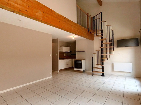 Au centre d'Ambronay, dans une petite copropriété de 6 logements, appartement T3 duplex d'environ 69 m2 Loi Carrez, comprenant au premier niveau entrée, pièce de vie avec cuisine aménagée ouverte sur séjour, terrasse, 1 chambre, salle de bains, WC, à l'étage une mezzanine et une chambre.