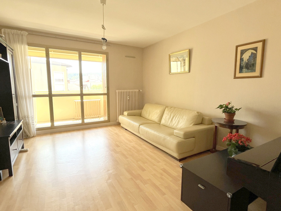 EXCLUSIVITE BUGEY IMMOBILIERSitué dans une petite rue calme, proche de la gare, de l'école et du lycée, nous vous proposons cet appartement T3 d'environ 63m2 Loi Carrez, situé au 3è et dernier étage, comprenant entrée, cuisine avec cellier, séjour donnant sur balcon (loggia fermée), deux chambres, débarras / dressing, salle de bains et WC.
