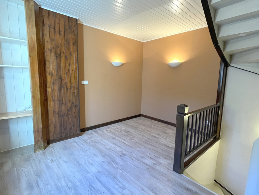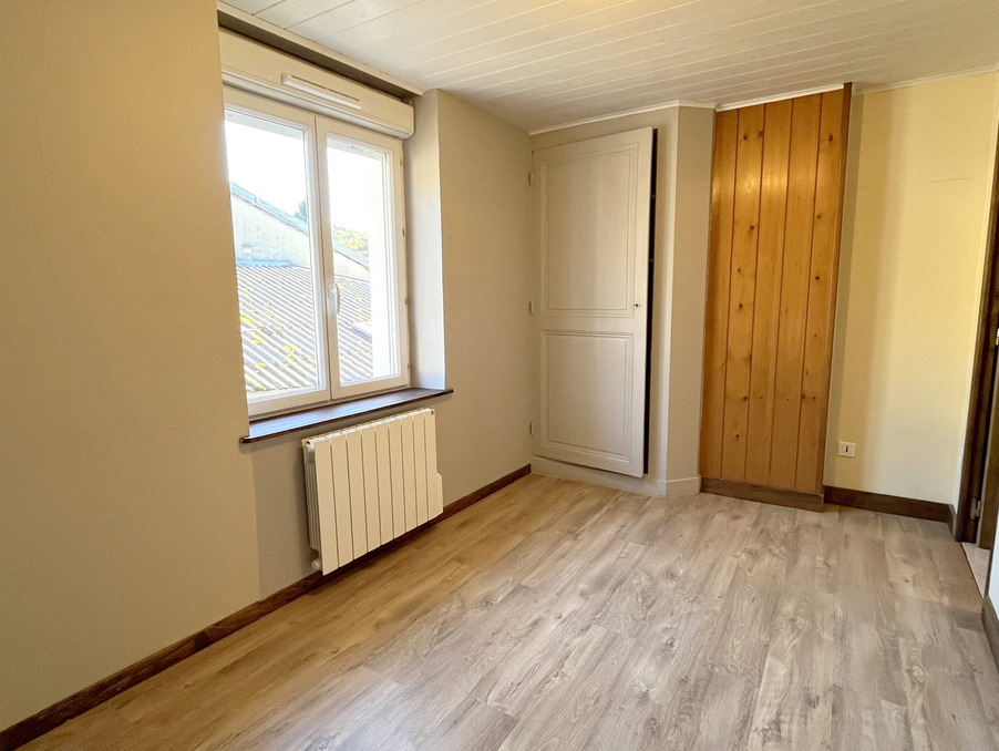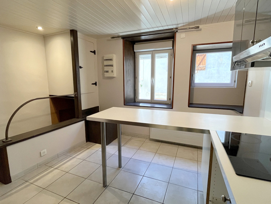 Au centre de Jujurieux, maison de village de 38 m2 environ, aménagée sur 3 niveaux, comprenant au sous-sol une cave, au premier niveau une cuisine aménagée et un WC, au deuxième niveau un salon, et au troisième niveau une chambre avec salle de douches et WC.Disponible de suite.